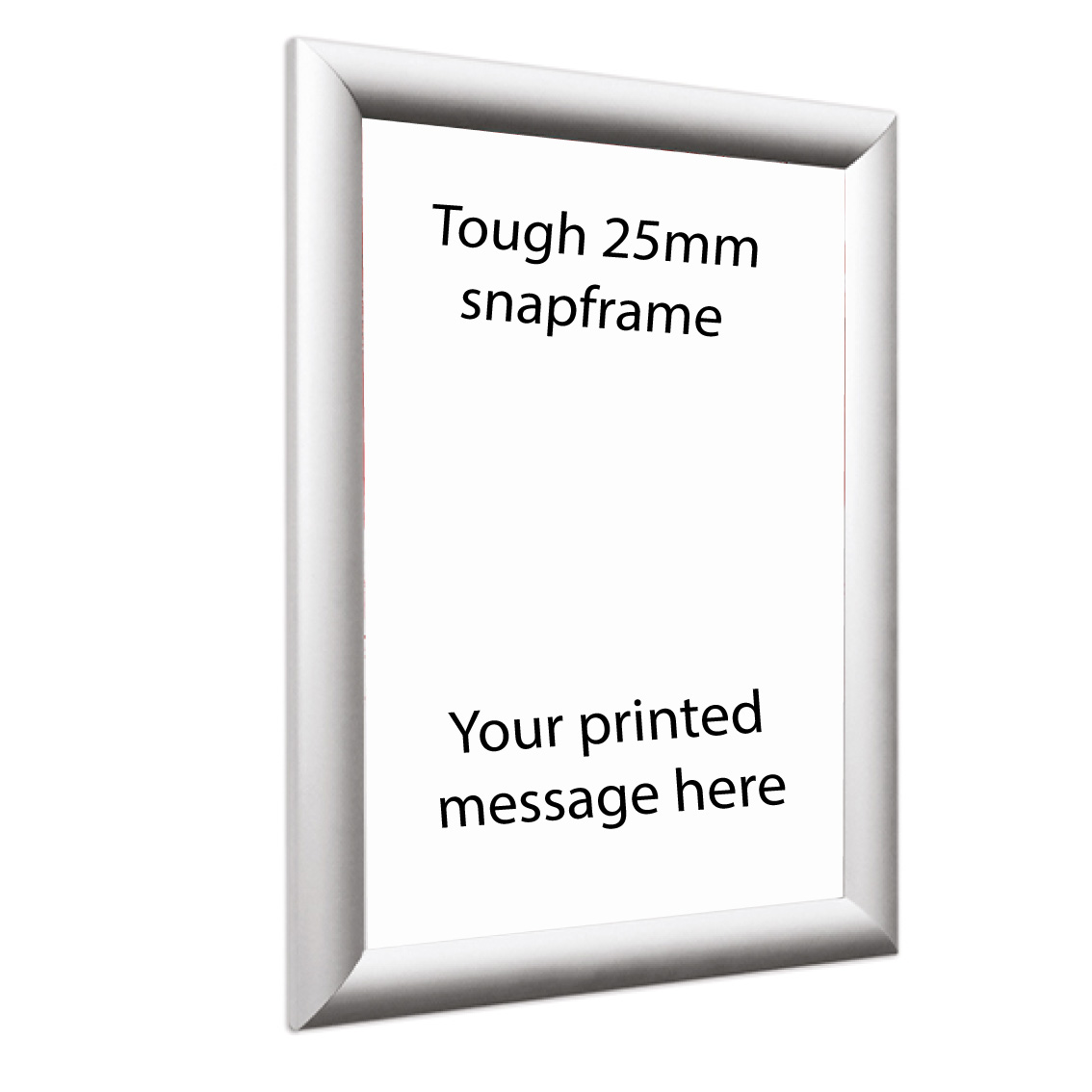 Manufactured with aluminium A4 or A3 SNAP FRAME mounted on 3 mm thick aluminium composite material with tough sign channel and clips.