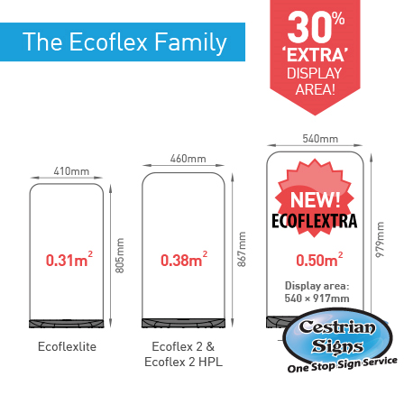 The new version of the Eco flex, the Ecoflextra, has arrived at Cestrian Signs. This new larger version of the popular pavement sign is Wind Tested to over 55 mph, beaufort 10.