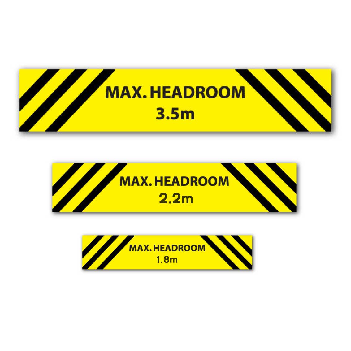 Max headroom sign size | 1220 mm x 100 mm, 1220 mm x 150 mm, 1220 mm x 200 mm, 2000 mm x 200 mm, 2000 mm x 150 mm, 2440 mm x 200 mm, 2440 mm x 300 mm |