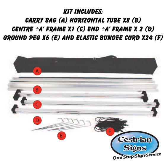 A large format banner ‘A’ frame made from lightweight aluminium, ideal for use with PVC eyelet banners.