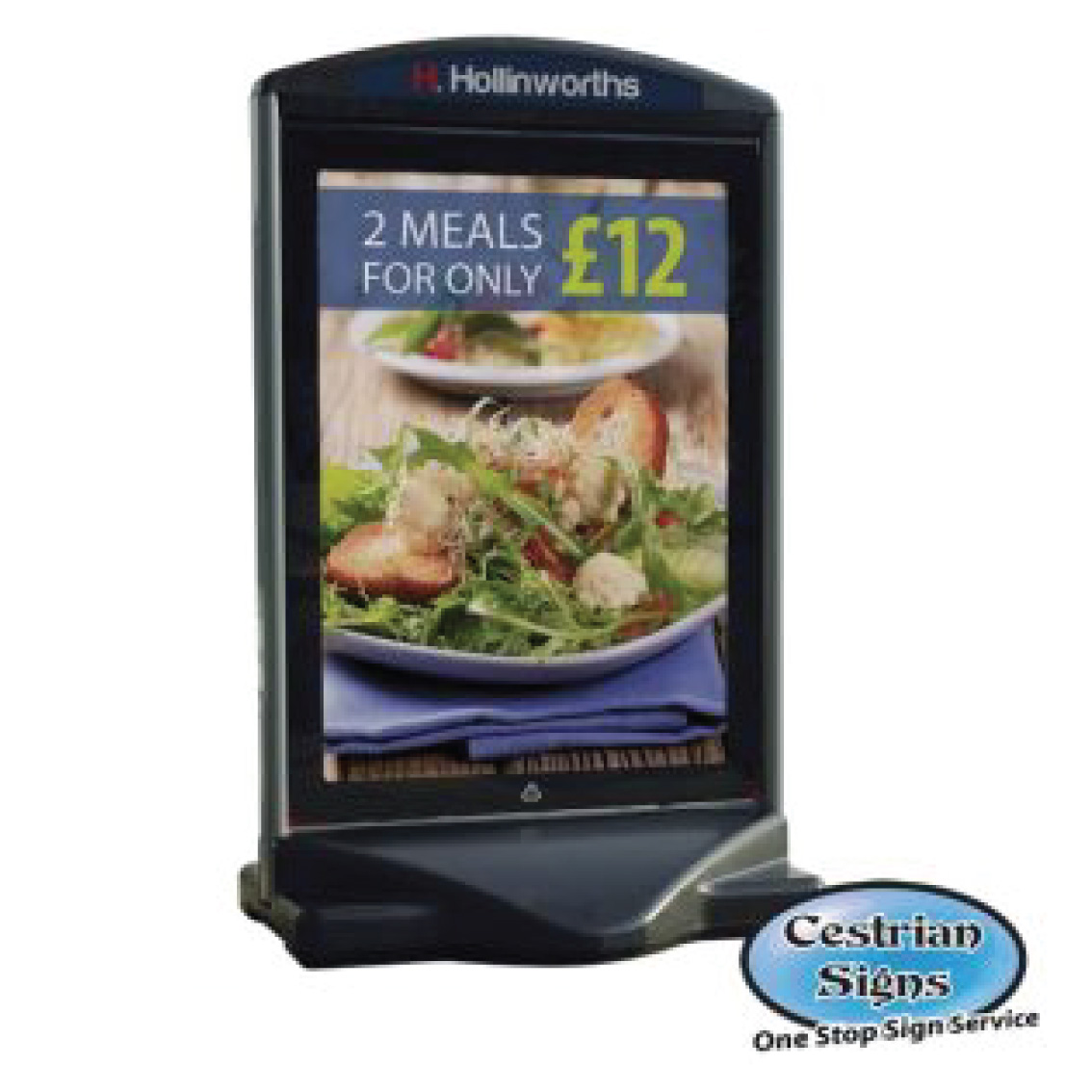 The Icon sign has a Unique hinged magnetic poster pocket.
