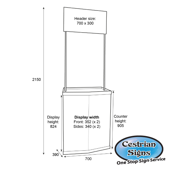 White foam PVC header and polypropylene counter panel – ideal for printed vinyl application, which we can do.