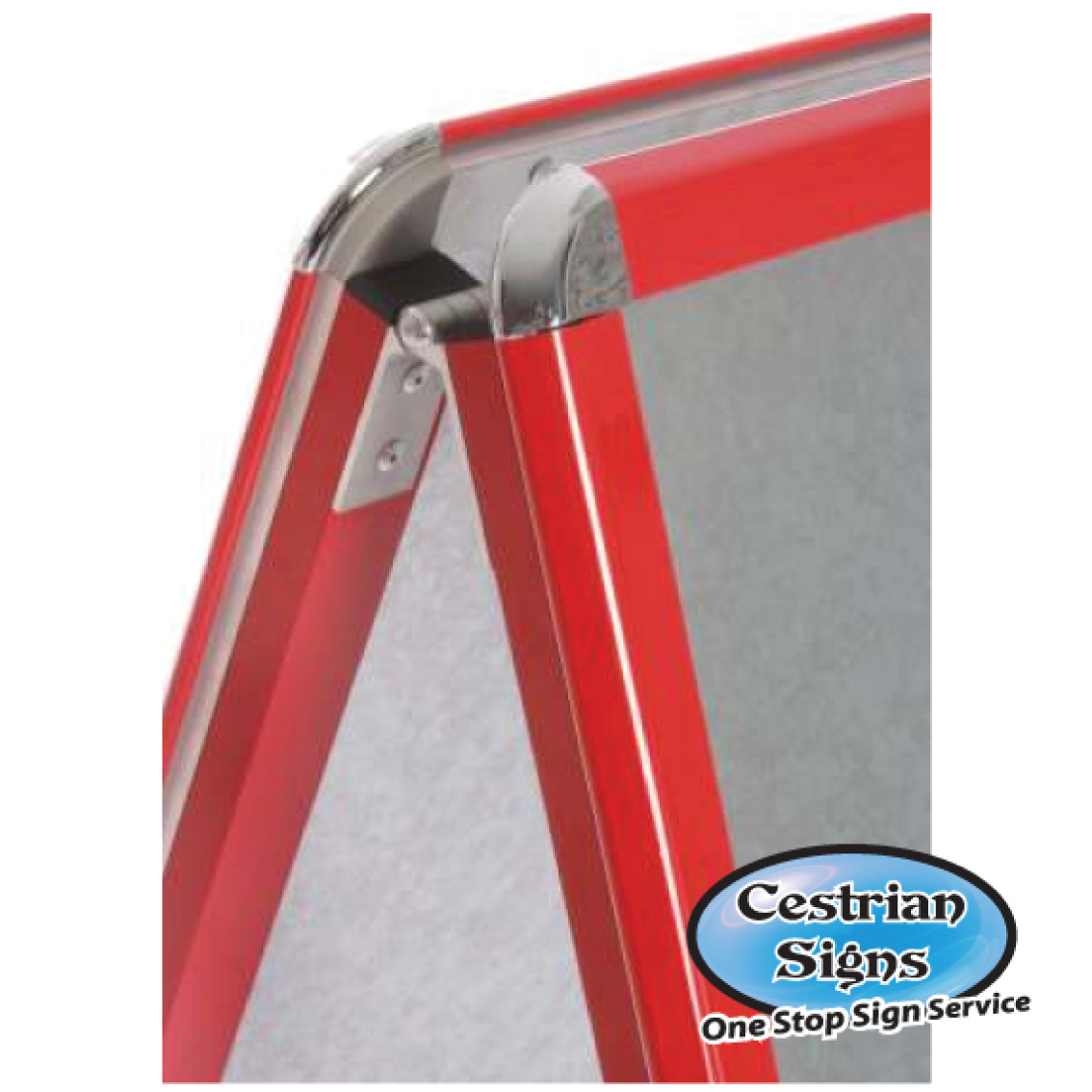 Standard aluminium A-boards with rounded corners.