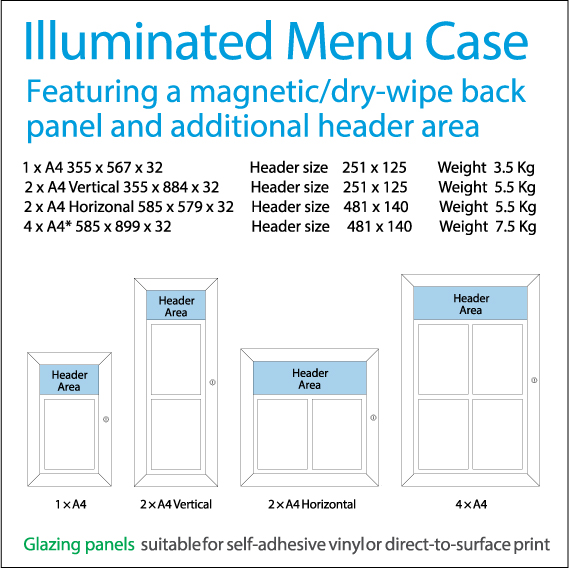 Slimlok 3 Illuminated Menu Case, size 4 x A4 Vertical from Cestrian Signs