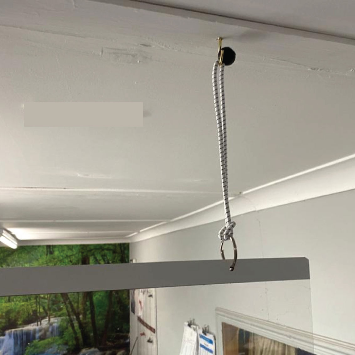 Our sneeze guards are manufactured from 440 micron mm thick clear plastic. Making it strong yet light enough to hang from a suspended ceiling. Sneeze guard comes complete with aluminium frame, ceiling hooks and a 200mm long bungie cords..