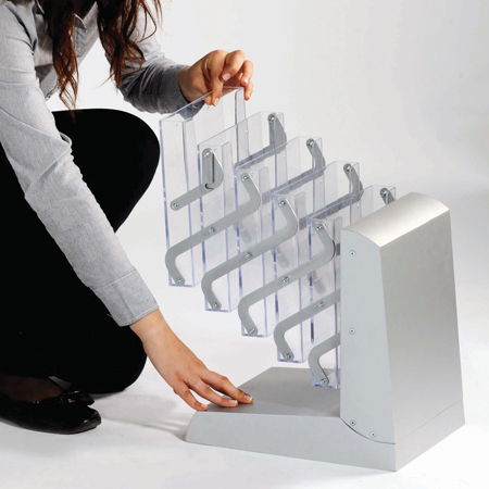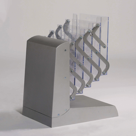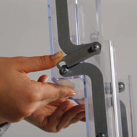 Freestanding brochure display with space-saving cantilever design – ideal for presentations, exhibitions, conferences and events.
