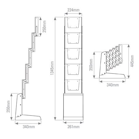Erect: 261 x 1345 x 340 mm Collapsed: 261 x 445 x 340 mm.