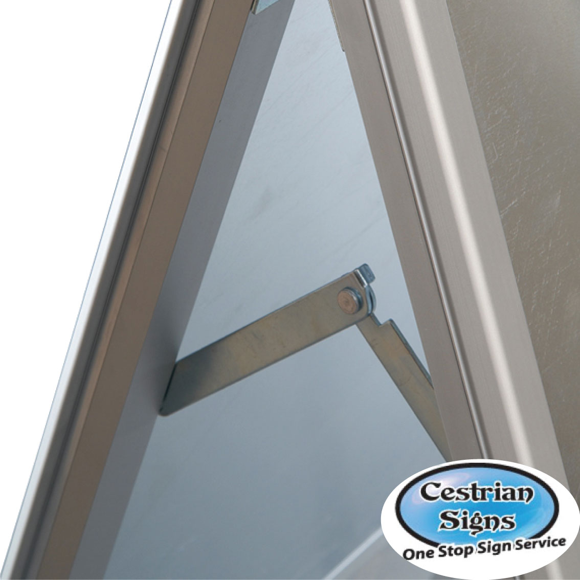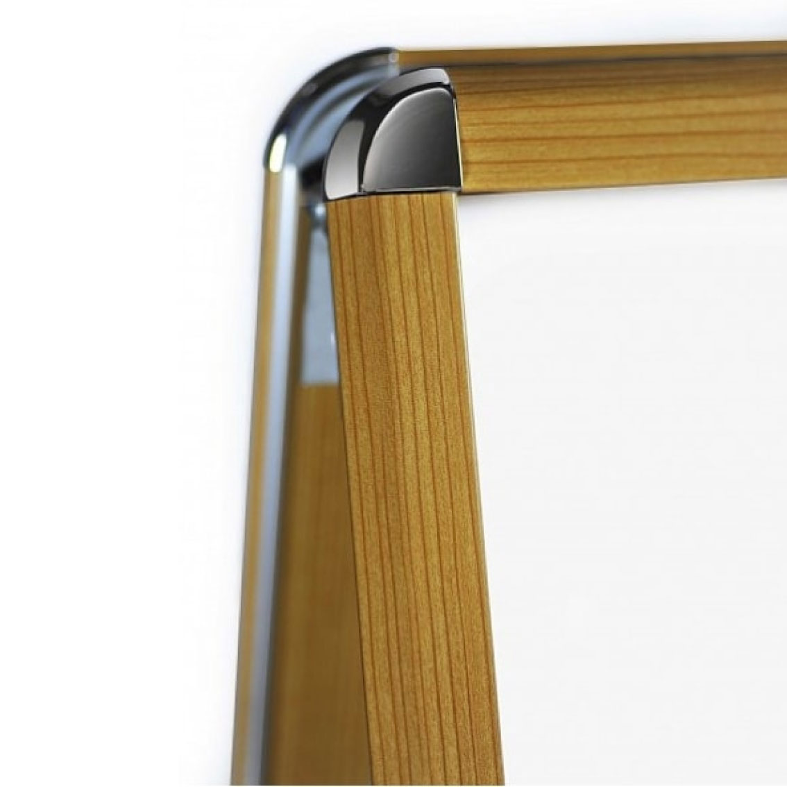 It’s quite difficult to show these off on photographs – they don’t do them justice! The wood-effect finish really is nice and wouldn’t look out of place in a high-end establishment. The grain is not at all cheap looking and we think they are the nicest aluminium a-boards you can get. The print goes right around the frames and legs. They actually do look like they are made from wood but obviouslt the longevity of the aluminium and quality control makes this a much better solution than a wooden A-board. The polished silver corners really marry in well with the a-board’s overall look and feel.
